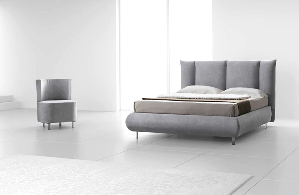 Cosmo is a bed with a modern and innovative design, characterized by a headboard composed of soft vertical cushions integrated into the structure and a rounded bed frame. These two features make it extremely comfortable.