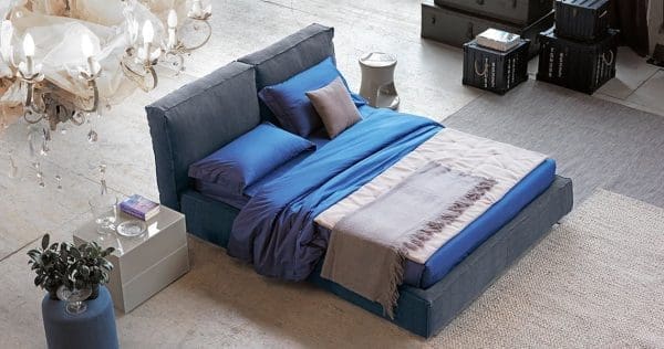 The Elena bed is made special by the stitching: the whole headboard it is in fact characterized by this detail which defines its geometry, enhancing its smoke gray fabric. The design, however, remains simple and linear: the mattress is supported by a thick and solid structure, as is the padded headboard. In this way, even when you sit up in bed, you retain the comfort of a soft pillow. The only detail besides the stitching is the division of the headboard in two to divide the areas of the bed.