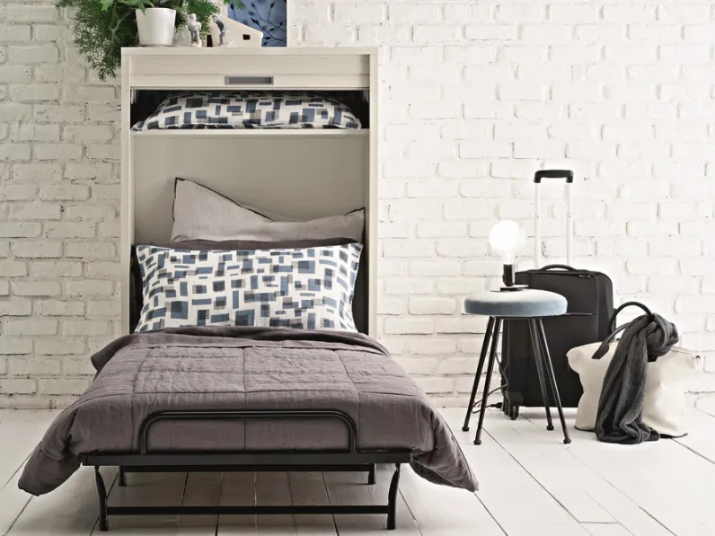 There is a travel retarder with steel spring and sliding shutter on wheels. For the Birex X-Box pull-out bed column, the orthopedic base in beech slats and the resin mattress are included. X-Box meets the increasingly frequent space needs in modern homes.