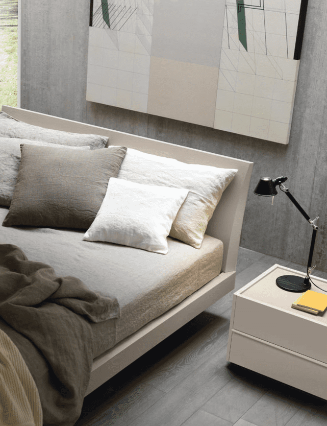 Brio is a designer double bed. The sturdiness of this bed is mainly given by the headboard, whose generous thickness is also visible from the front thanks to its inclination. It is covered with a layer of synthetic ash that offers resistance to shocks and time.