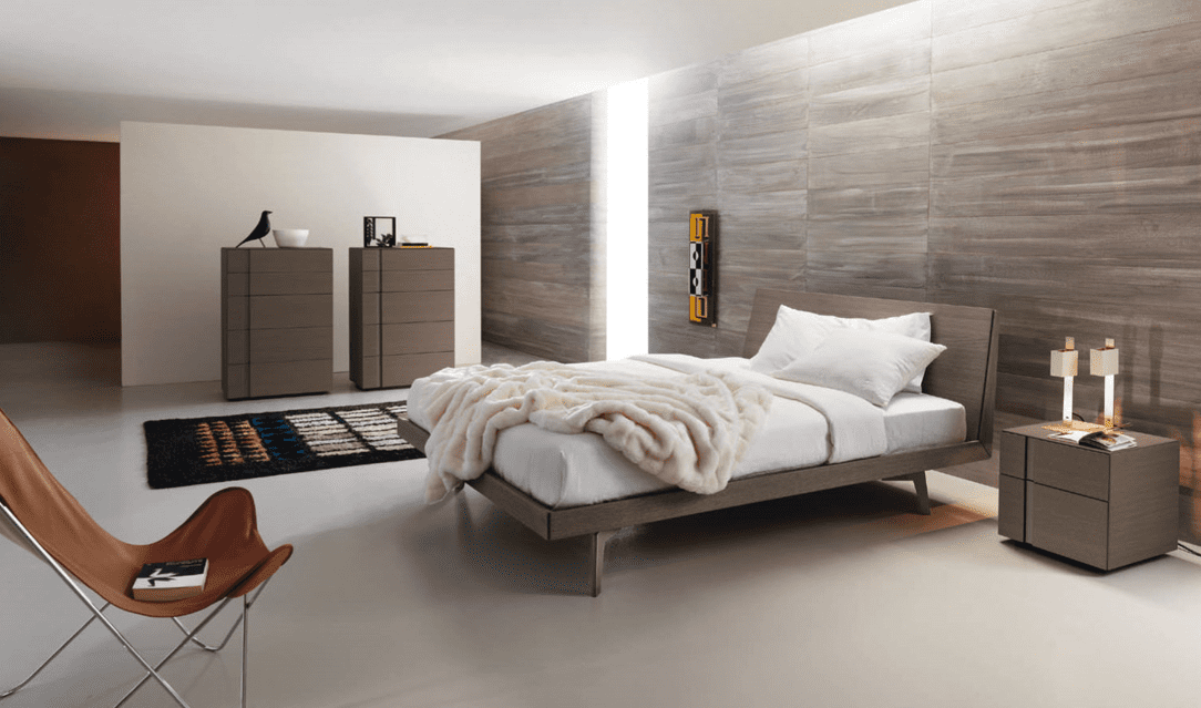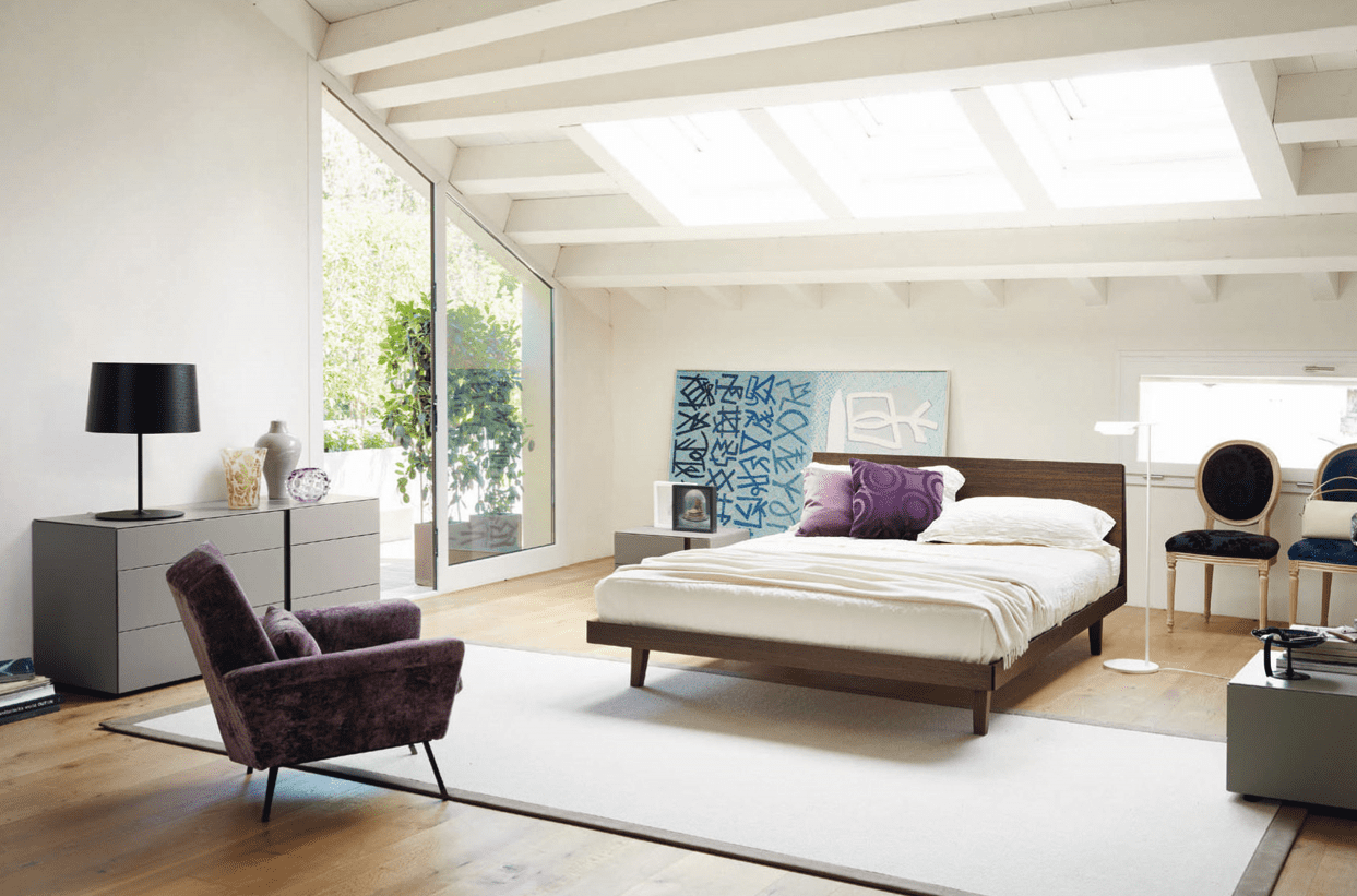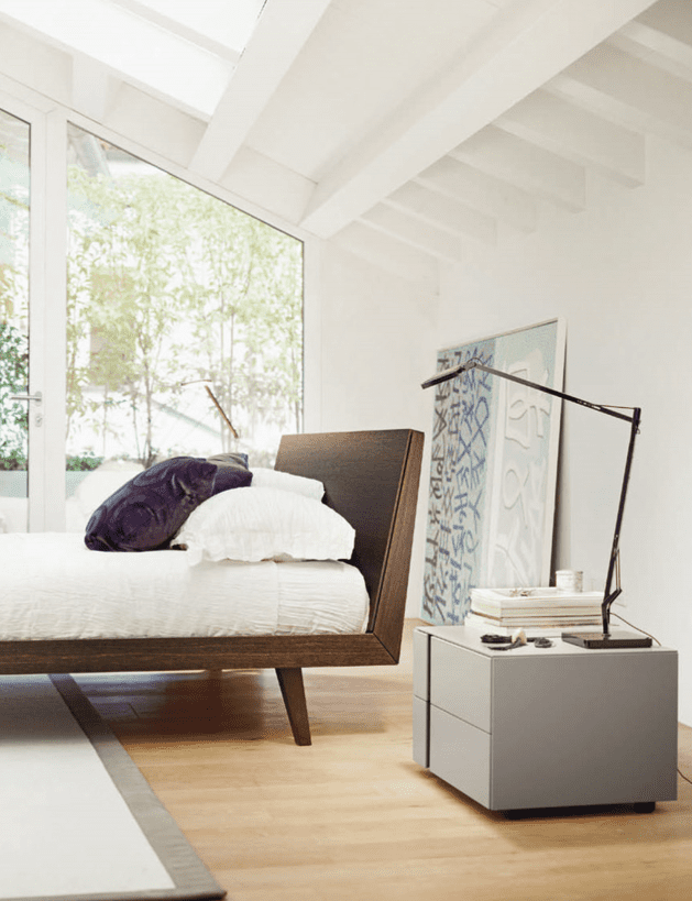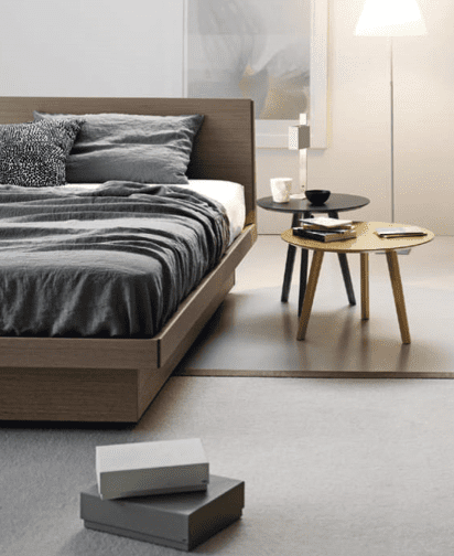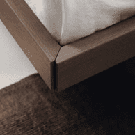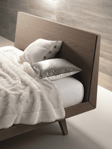 Febo 1.0 is a minimal and enveloping bed, thanks to the structure, headboard and bed frame made entirely of oak veneer. The matching feet are slightly inclined and, as they are positioned inside the volume of the bed frame, they give the structure a suspended and light effect.