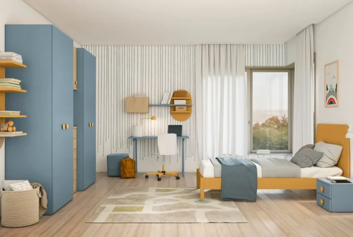 Cameretta singola realizzata da Volo Collection con armadio scorrevole e letto da un posto e mezzo