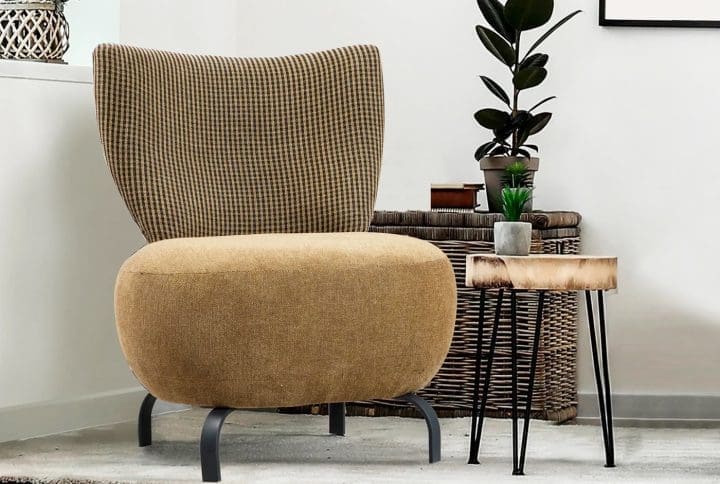 Frame: Made of durable beech wood for long-lasting support. Fabric: Made of 100% polyester for durability and trouble-free maintenance. Legs: Sturdy matte black metal legs for stability and a contemporary look. Dry cleanable fabric for easy cleaning and maintenance.