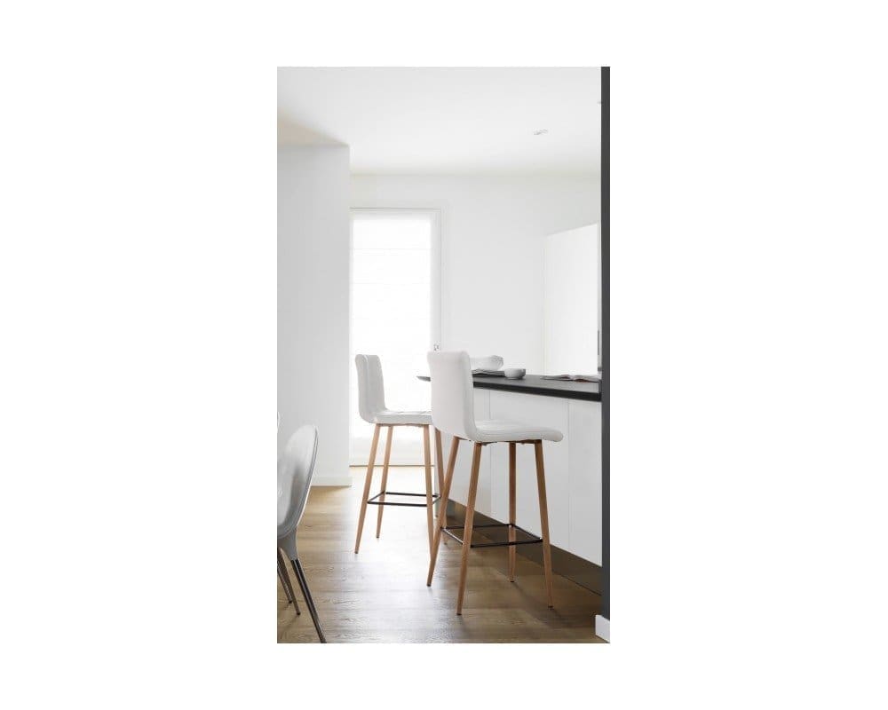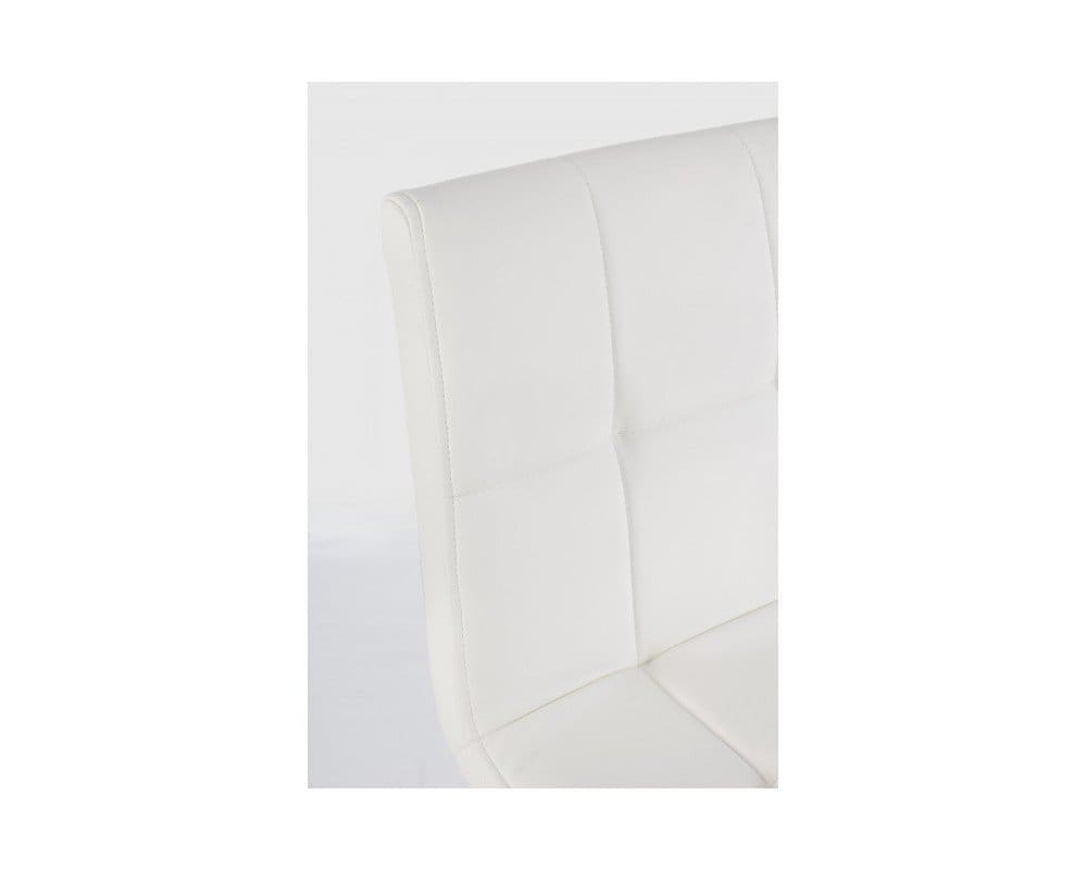 Solid and durable, Bruce has achromed steel frame. Its innovative design is the result of a combination of excellent materials, such as the wood-effect painted steel frame and the seat upholstered in white synthetic leather, and great professionalism.