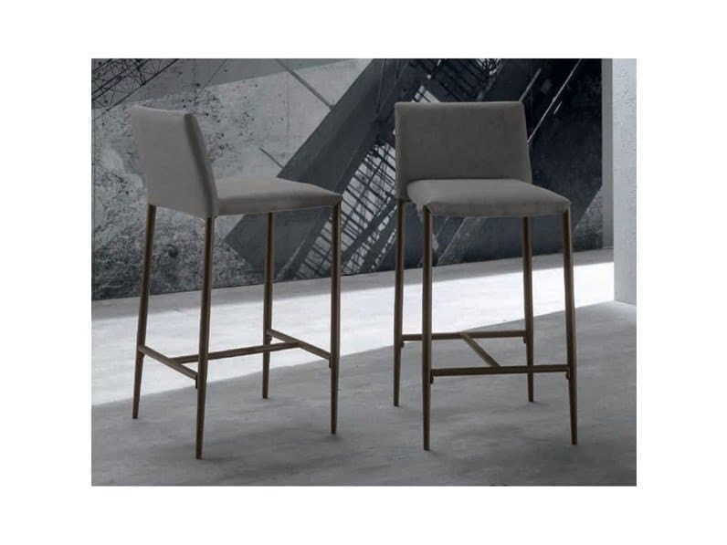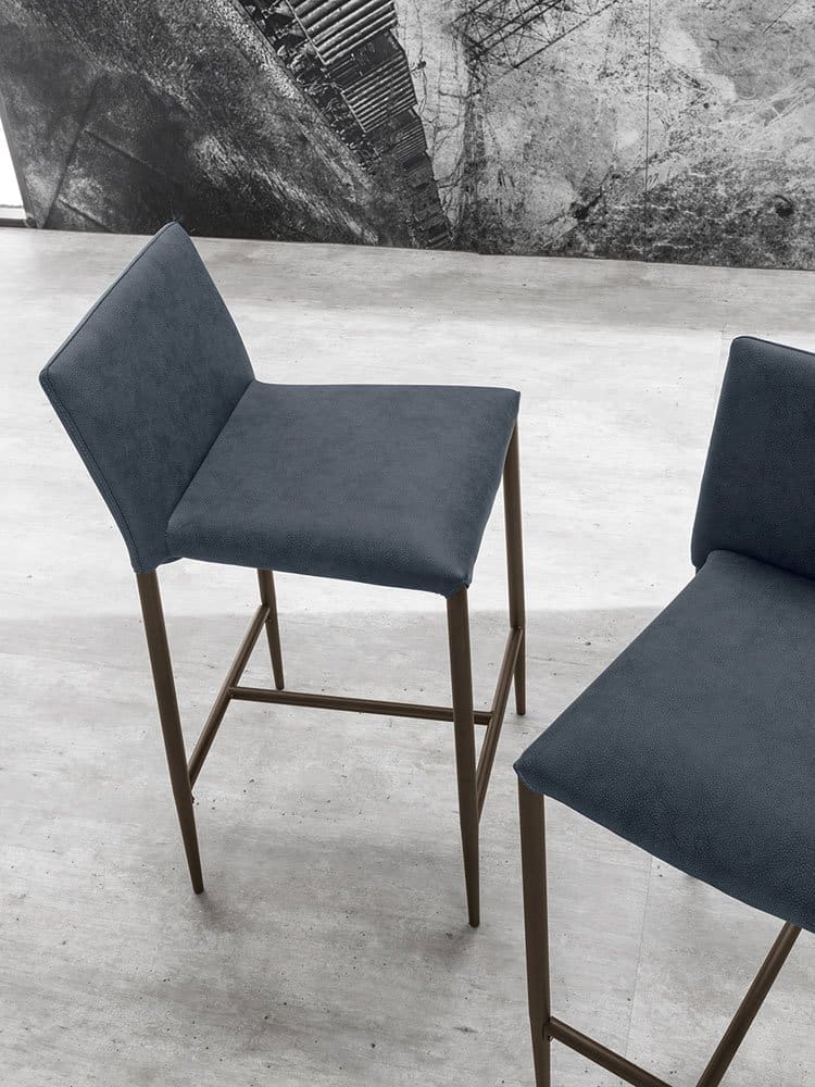 Memphis is a stool with a metal frame and plywood seat upholstered in various materials and finishes.