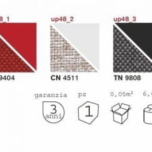 It is possible to choose from a wide range of coatings on request. With a surcharge, the upholstery is also available in genuine leather. The colours available for the painted metal structure are white, anthracite, corten and black. The minimum packaging is 1 piece.