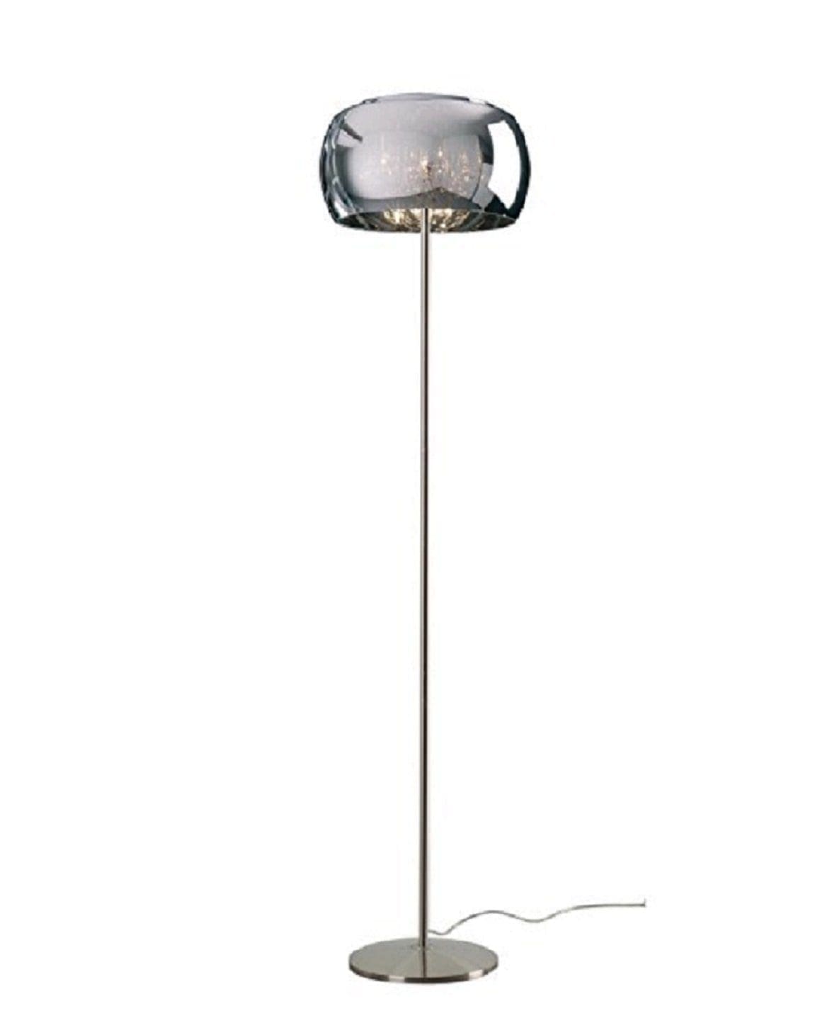 Mirror has a mirrored glass lampshade with crystal pendants and is designed for 4 G9 max 42W bulbs (not included). The structure is in chromed metal and there is a floor switch cable.