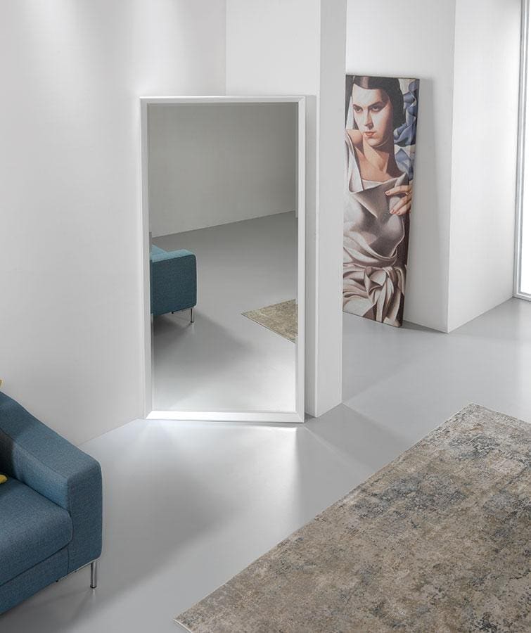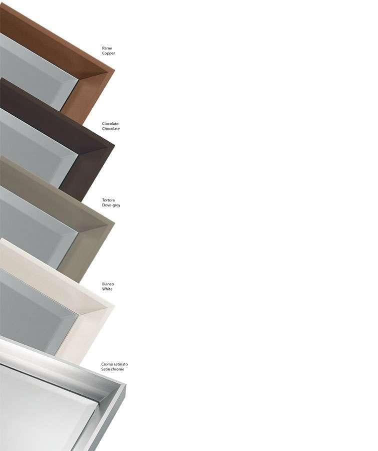 Its extremely refined design is given by the aluminum frame painted sablè black, sablè white, slate sablè, dove gray sablè or sablé blue. Riflesso will give a touch of style to the environment thanks to its strong personality, also giving you practicality and comfort. Riflesso is available in many other sizes and finishes.