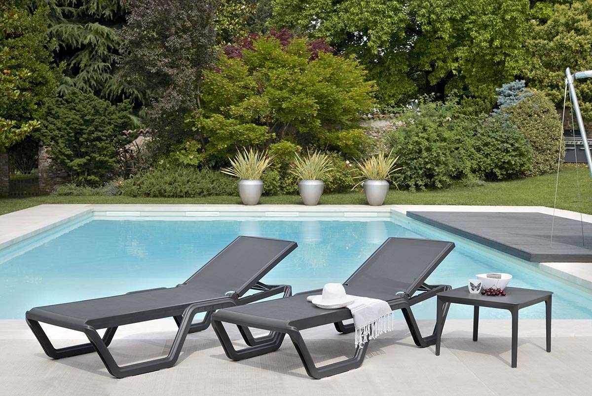 The Vela lounger features an adjustable, wear-resistant and weather-resistant backrest and is also easily stackable.