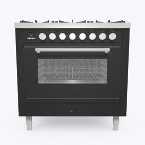 Freddy 45 has 9 functions, 6 cold and 3 hot. The finish is available in stainless steel with a black handle or in black glass with a stainless steel handle.