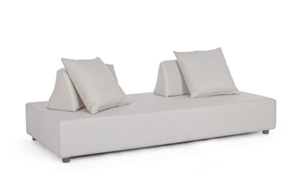 We propose the Piper Sand model sofa with cushions by Bizzotto, the couch that can be customised by combining the backrests in an ever-changing way.