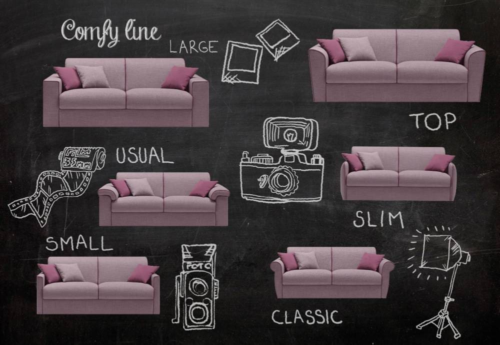 Myhome presents the Comfy model by Samoa in the Slim version, the linear sofa from the new SWAP AND CHANGE collection.