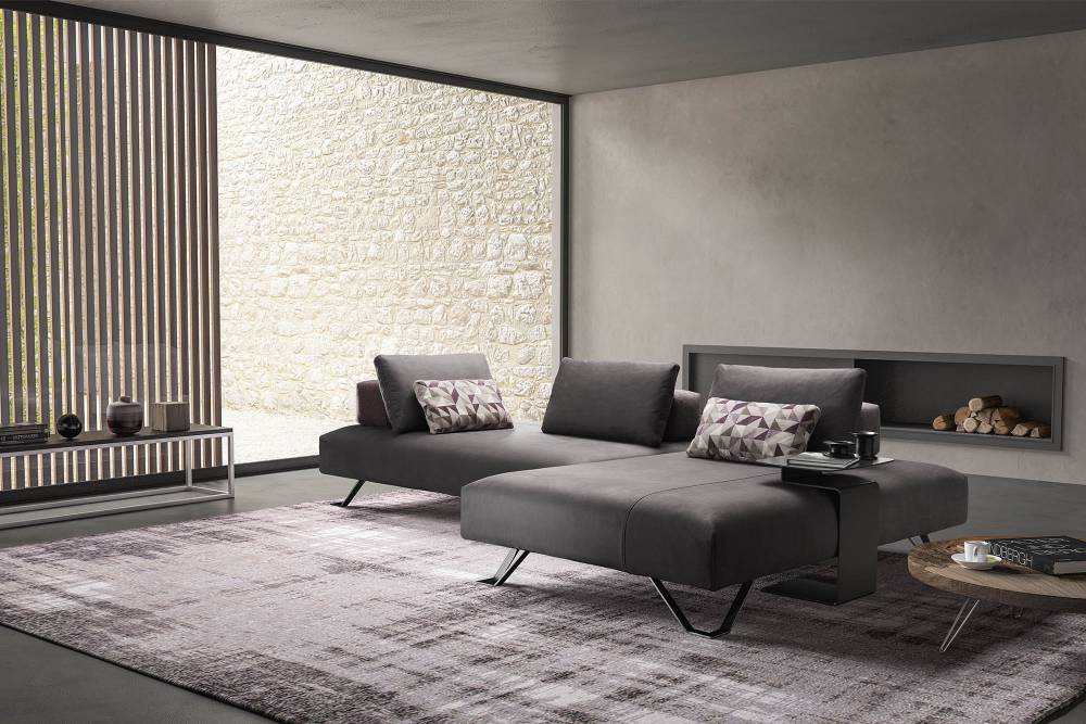 Lightness thanks to the stylized feet and freedom in positioning the composition of the cushions are its strengths.