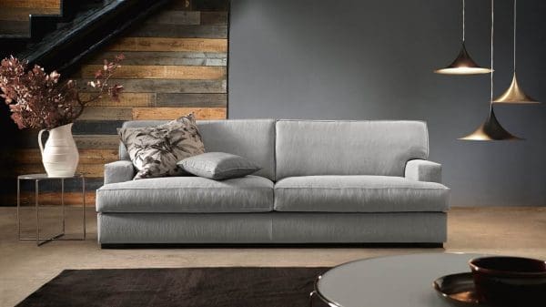 Its structure is made of solid fir wood and the seats are soft and wide, inviting you to total relaxation. Gost is available in different colours and different fabrics, in a fixed version with two, three or four seats up to 240 cm in width with possible surcharges. It is also possible to complete the living room with an armchair and a pouf of different sizes. The offer is for the sofa in the photo (two-seater, in fabric, 160 cm wide).