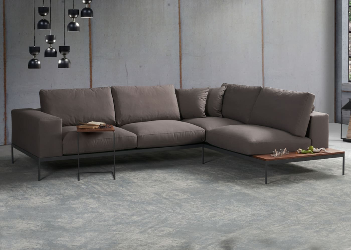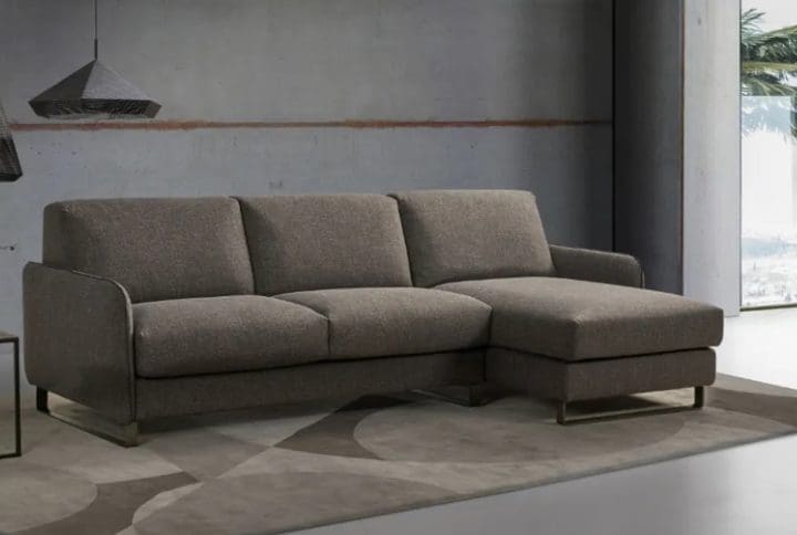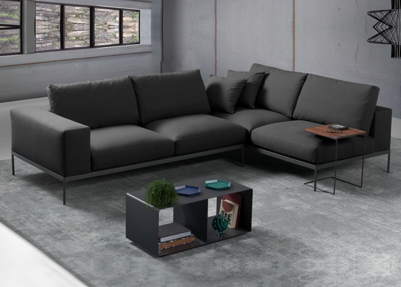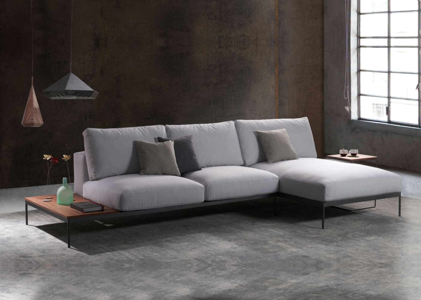 Young and dynamic sectional sofa with modern taste. A very important metal base makes it as if “suspended” from the ground allowing daily and easy cleaning for users.