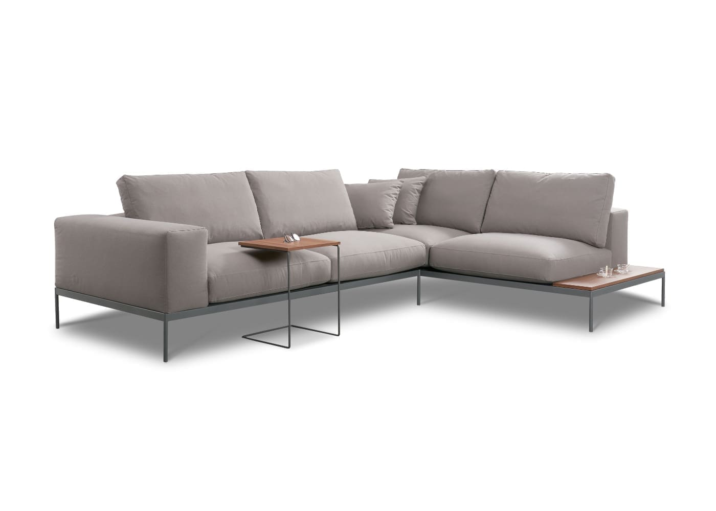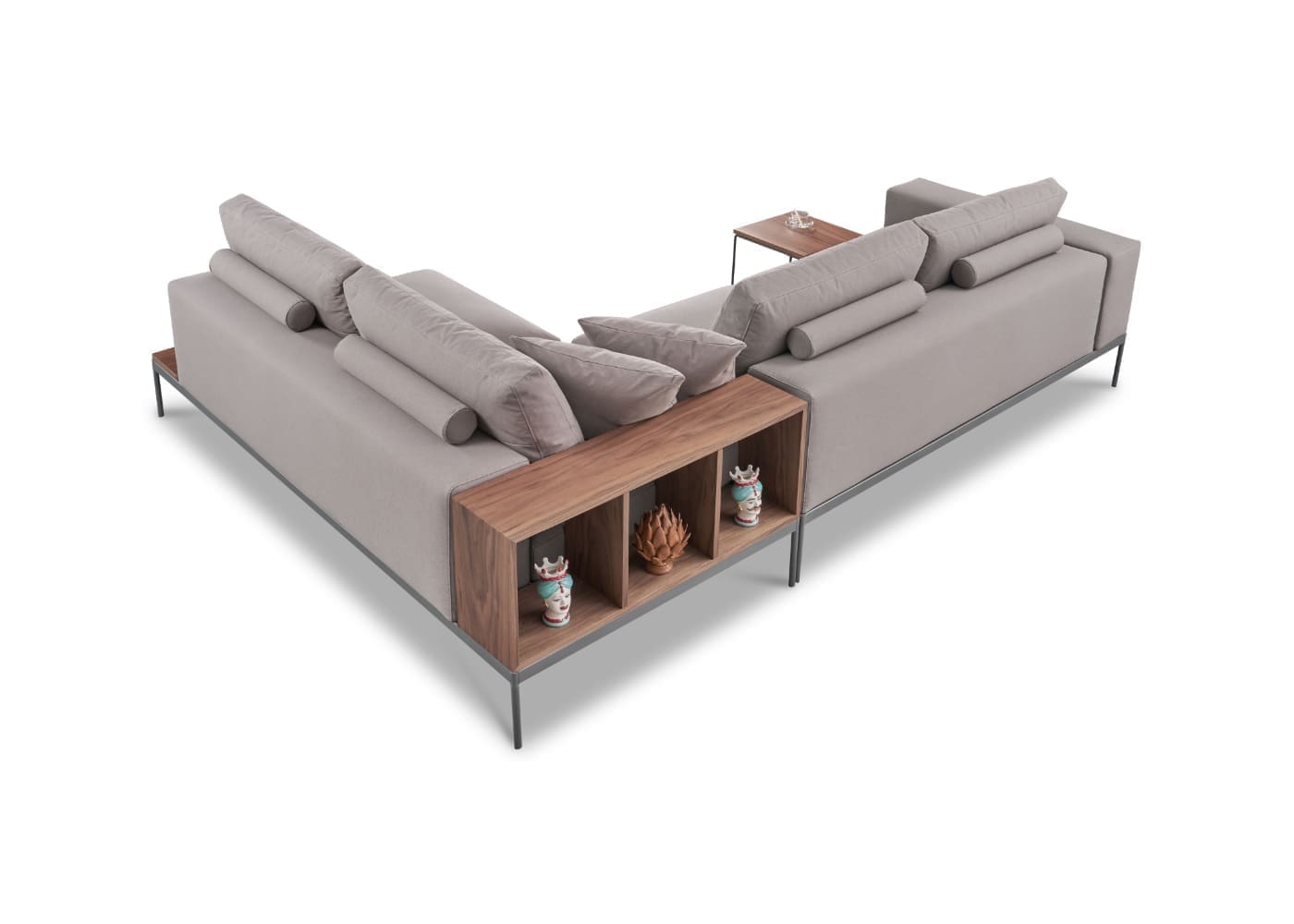 Manganese gray painted metal base cm 4. This sofa can be equipped with a bookcase and service top veneered in canaletto walnut color.