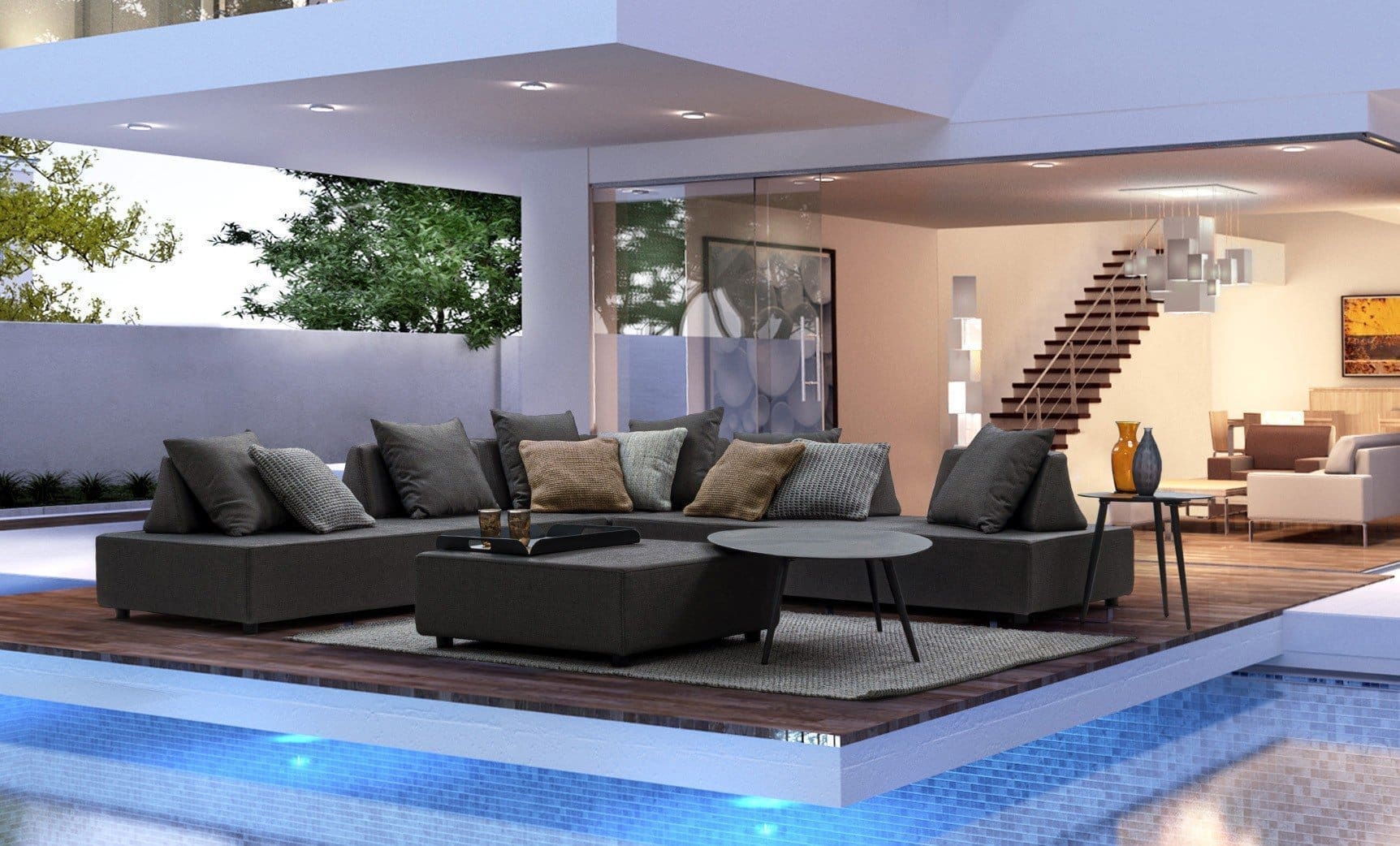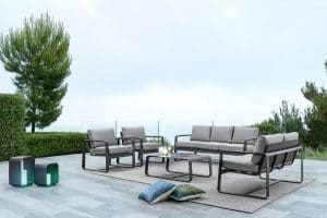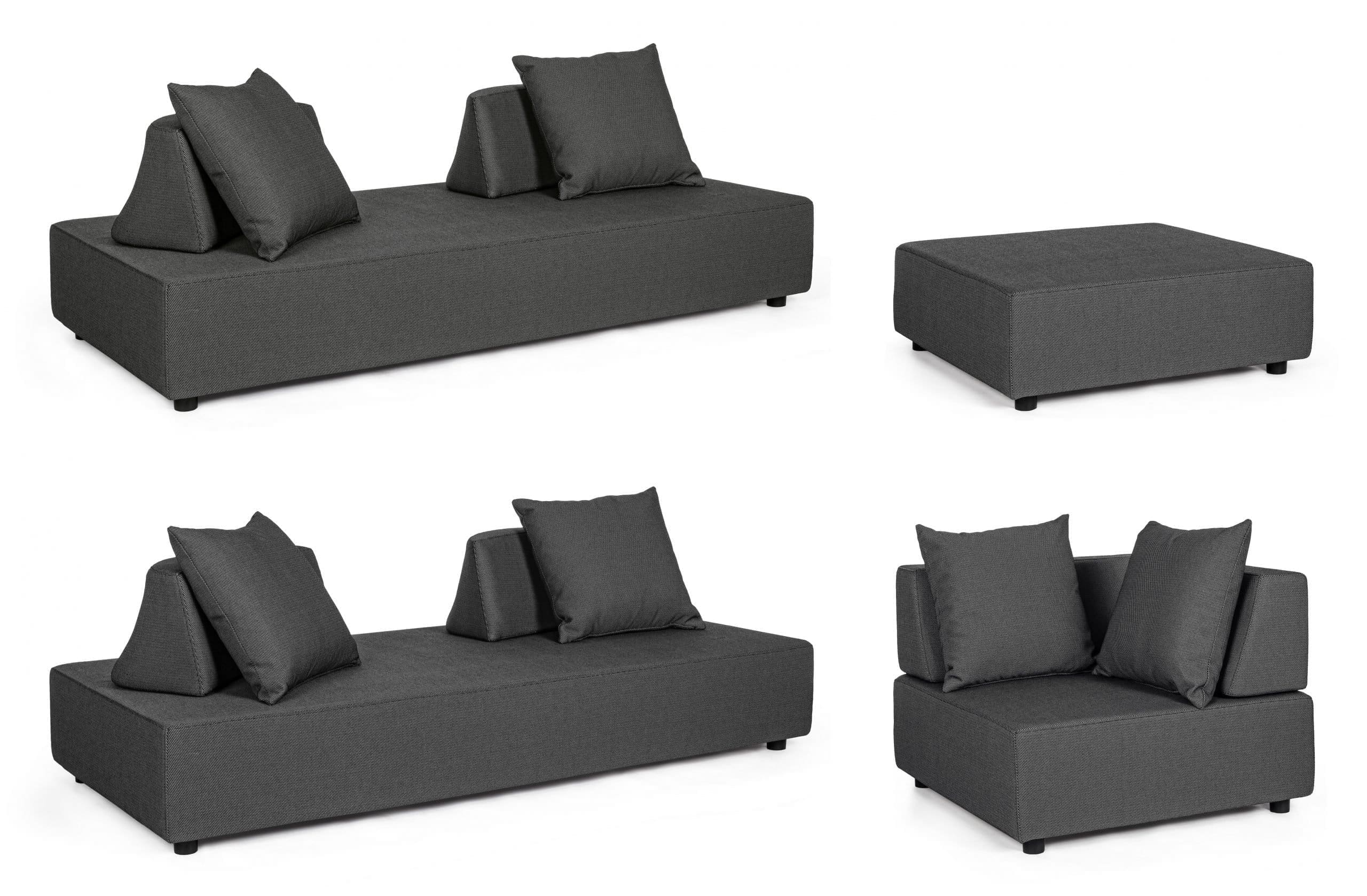 The upholstery fabric is water-repellent and UV-resistant (grade 7), waterproofed on the inside with a fabric cover. Piper is an ideal space to relax in company in your outdoor space. The version of Piper being promoted is anthracite, but is also available in whiteon request.