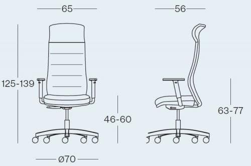Grid48_t is a fabric office chair with a self-heavy synchronized mechanism. It has a polished aluminium spoked base and height-adjustable armrests.