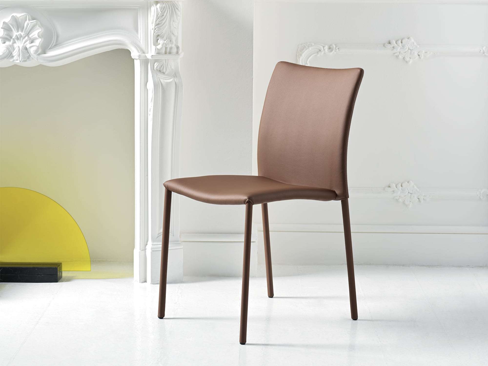Simba is a chair with a modern, comfortable, practical design and elegant lines, suitable for any room in the house. Simba is a chair without armrests with steel structure completely padded and covered in ecological leather.