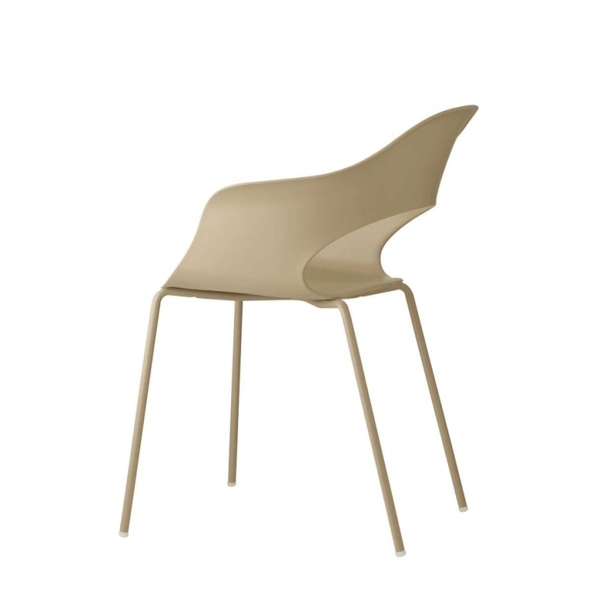 A seat suitable for all spaces, including outdoor ones, Lady B It provides a high level of comfort, due to its enveloping shape. Characterized by a modern design, it has a frame of 4 legs in painted tubular steel and a seat with technopolymer armrests. A space-saving solution, because it is easily stackable (up to 4 elements).