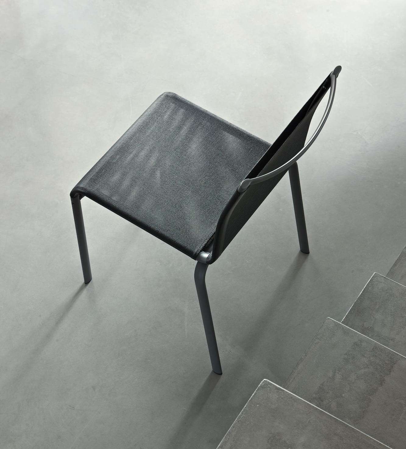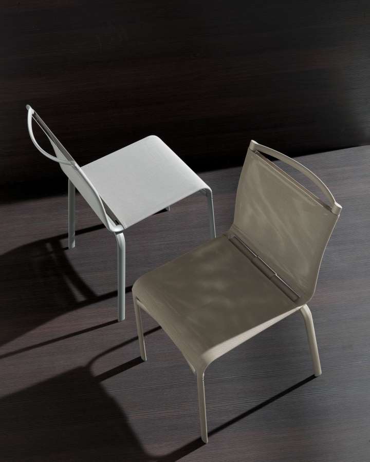 Net is a comfortable and light chair with a modern and simple design which makes it suitable for any room in the house, both in the living room and in the kitchen. The Net chair is stackable with a lacquered steel structure in aluminum, white, light grey, sand, light blue, dark brass, anthracite or black finishes. The seat and backrest are made of Texplast, a resistant and breathable mesh plastic material that is easy to clean and can be used both inside and outside the home.