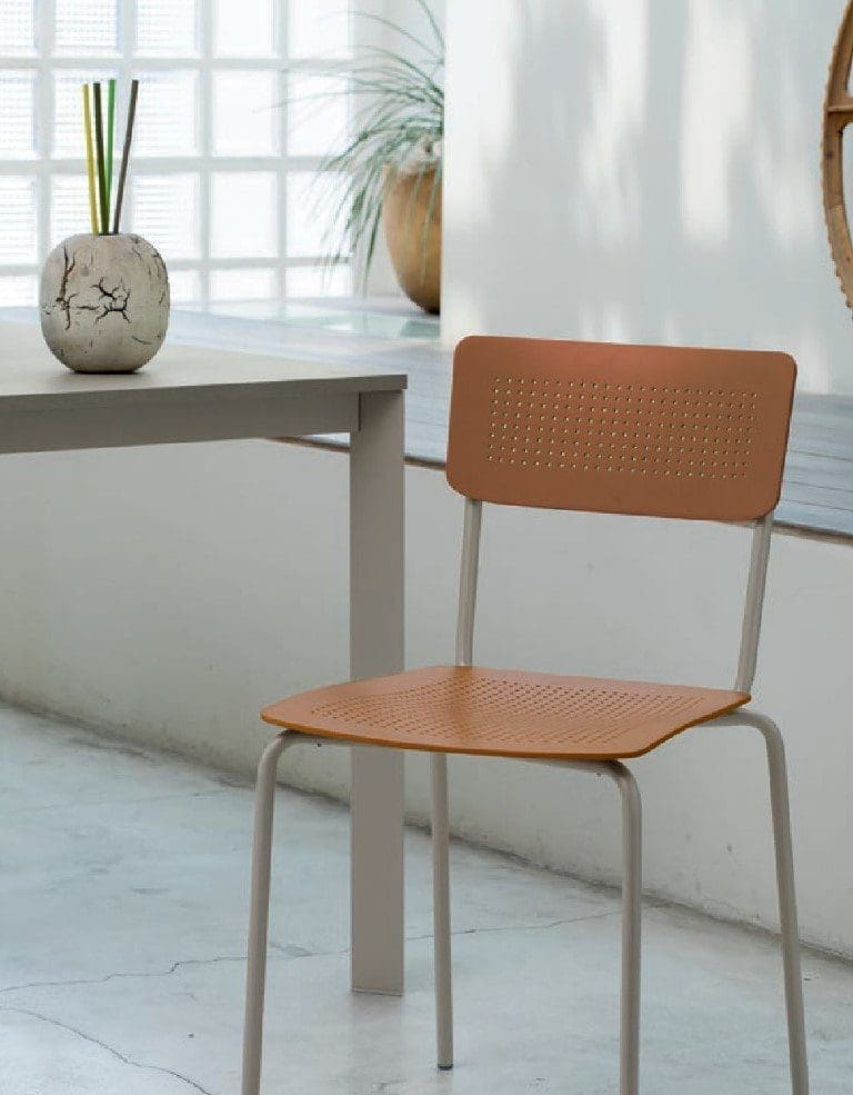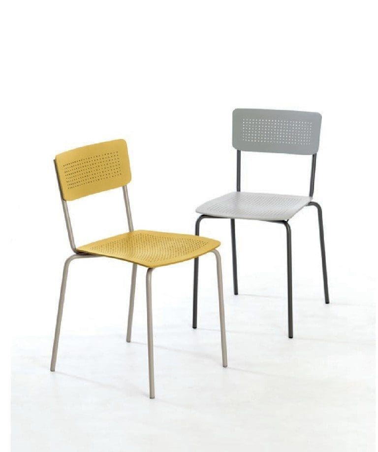 College is an easy and practical chair. The particular workmanship of the seat makes it simple to use and suitable for everyday environments, such as a kitchen or a veranda. The structure, however, is made of resistant lacquered steel, which can be customized in a wide range of colours, all with sober and delicate tones.