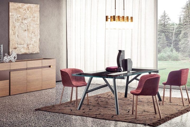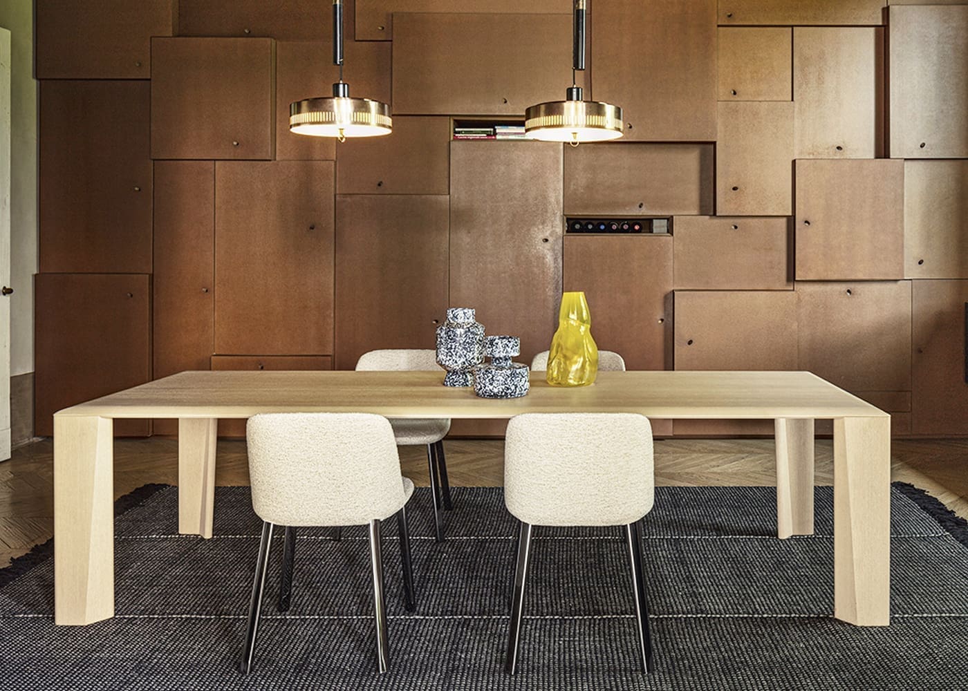 MYHOME Furniture Outlet presents the Enea table signed Pianca! Dynamism and tension. Made entirely of wood, the Enea table is distinguished by the particular geometries that enhance its design and material. The top is characterized by a shaped edge bevelled at 45°: the peculiar processing of the covering allows the wood grain to wrap around each side, in a material and visual continuity that emphasizes and enhances the fold effect and the apparent plasticity of the surfaces. The legs, on the other hand, are made from a shaped figure covered in wood veneer; they are born from folding-like processing, the end result being an iconic and distinctive leg emphasized by the wood grain. Pianca tables are a solution for every space and are designed to give an answer to the most diverse needs of environment and style. A range of design proposals, appreciated and awarded internationally. Available in various finishes and width dimensions (190 – 220 – 250 – 280 cm)