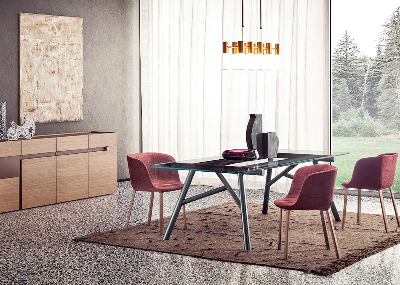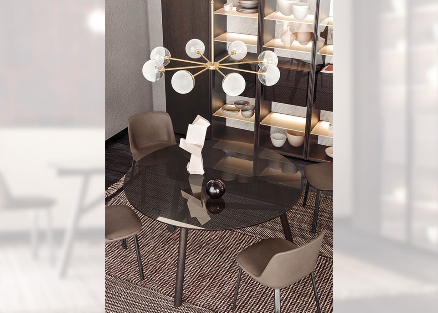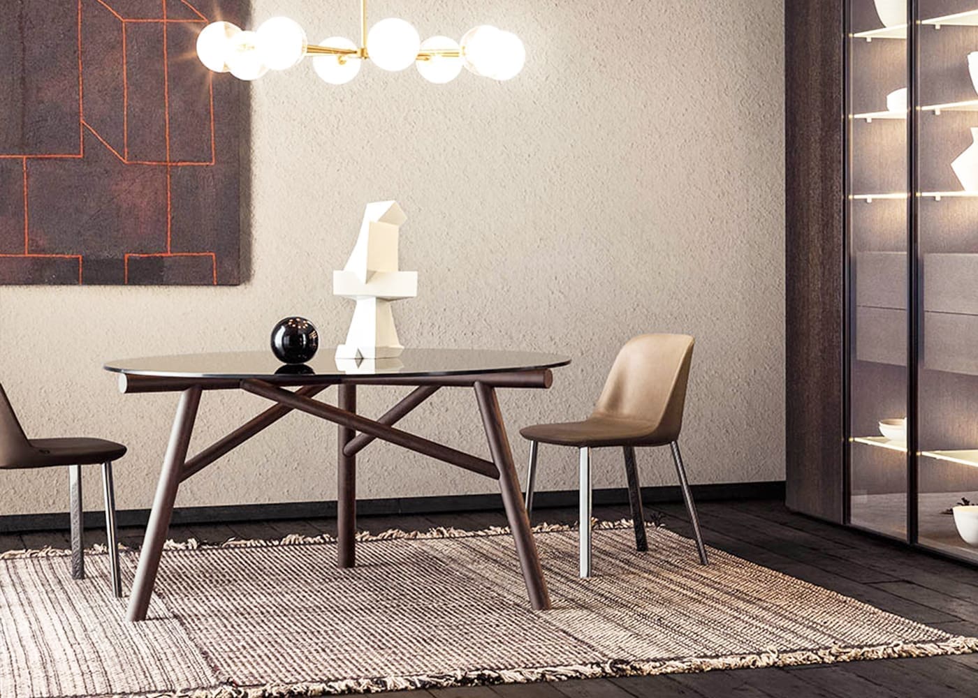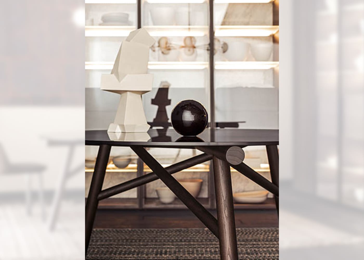 MYHOME Furniture Outlet presents the Maestro table signed Pianca! The collaboration with Emilio Nanni, former author for Pianca of Haik and Asolo, is renewed. His training and experience as an architect, combined with the versatility with which he expresses his creativity as a designer and artist, lead him to create iconic projects of great eloquence, such as the Maestro table. In a perfect balance between geometric concept and structural stability, Maestro stands as a synthesis acquiring aesthetic value from this confrontation-meeting. The segment becomes the defining feature of the design, while, as a whole, it outlines a design that recalls the lattice trusses of architectural trusses. The structure is provided in wood and painted metal, while for the top, smoked crystal and natural concrete options have been studied.Available in various finishes