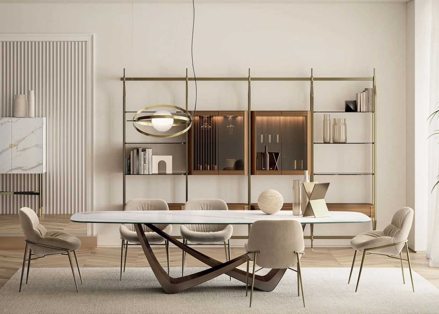 Bontempi tables are synonymous with quality, sturdiness and variety. Having a table that is sturdy, durable and in keeping with the decorating style of the room is important for the overall harmony of the whole house. Glass tables are tasteful and minimal, fitting contemporary homes and even more rustic styles. Extendable glass are the perfect solution for the kitchen, practical and functional, space-saving and decorative. Transformable are an important piece of furniture for those who live or work in small rooms, as they fit in tight spaces and can be extended when needed. Kitchen tables or tables ideal for the living room, Bontempi Casa offers multiple collections of products that meet all needs and requirements. Extendable tables, fixed tables, extendable consoles and contract tables available in different formats such as: rectangular tables, elliptical tables, square tables and round tables. The wide collection of tables is available in crystal and scratch-resistant crystal, wood veneer, superceramic, supermarble. The table has always been the undisputed protagonist of the living area and beyond. Bontempi Casa tables have a modern, elegant and refined style. The furniture is completed with Bontempi chairs available for both living room and kitchen. We offer you the rectangular and barrel table, fixed or extendable, with frame and decorative details in Lacquered Steel. Top in wood veneer, solid wood, debarked solid wood, Crystal, Scratch Resistant Crystal, SuperCeramic and SuperMarble.