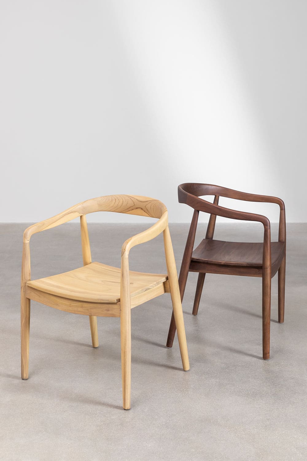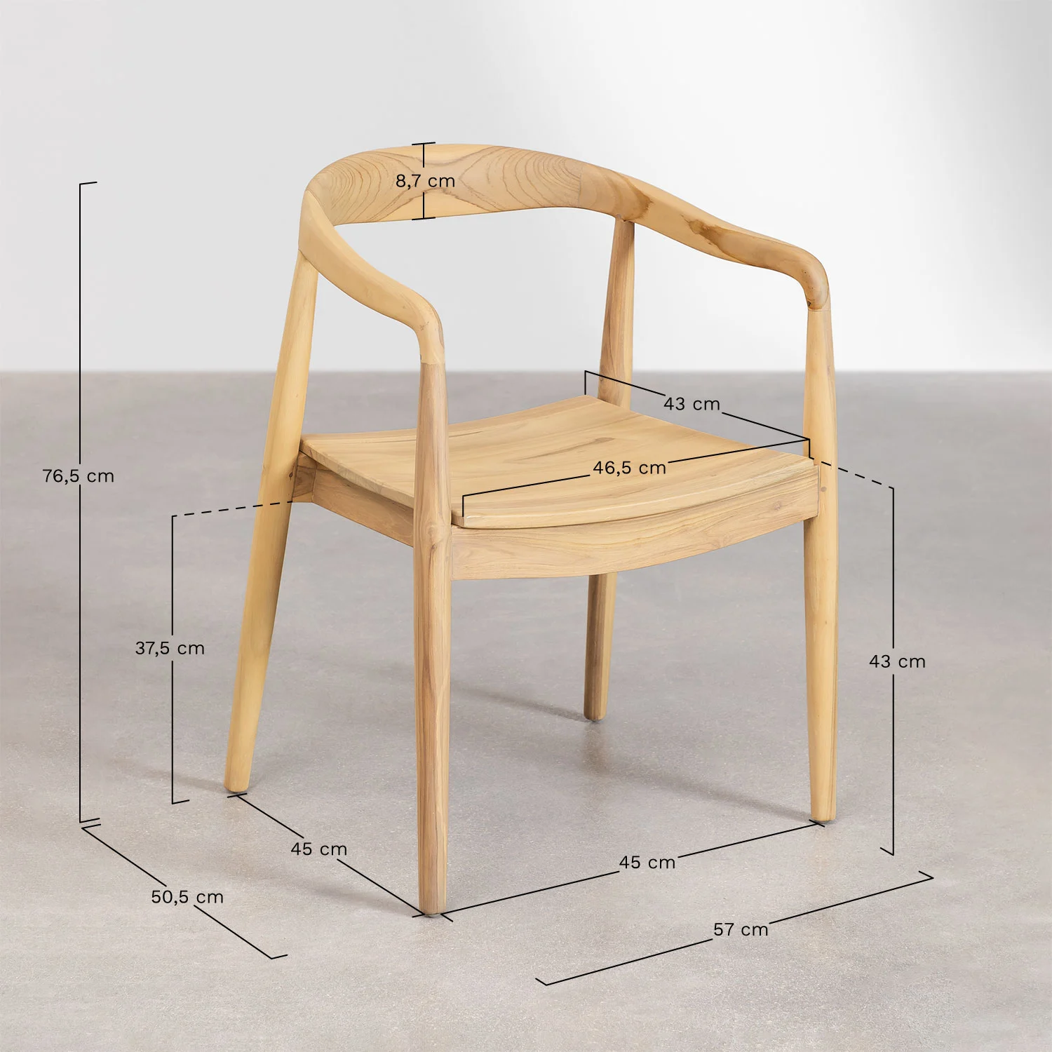 The structure of the MYHOME Alizee wooden chair on sale is in solid teak. Alizee is only available in the version with armrests.
