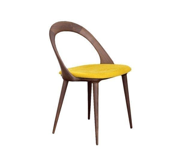 Garbo is the new padded chair with elegant shapes and particular features. This chair is made entirely of solid wood with an upholstered seat. The rear legs are not completely straight, but have a slight inclined and curved line that follows that of the backrest. The armrests are curled inwards, a typical feature of classic furniture from the past.
