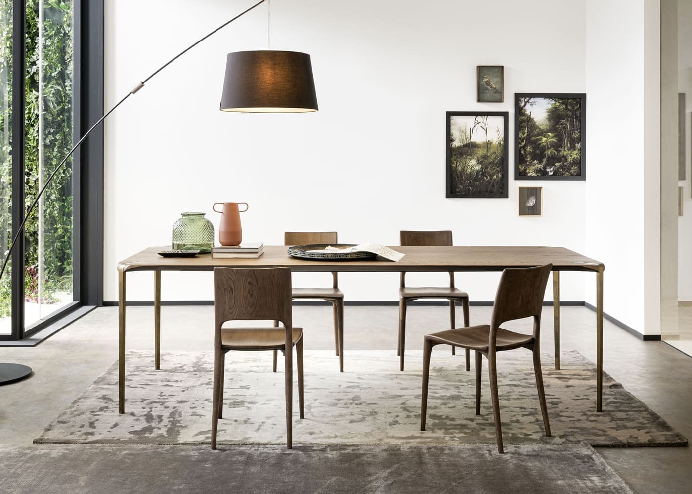 The Lio table is the brainchild of the Altacorte style center. Its slender lines give a feeling of lightness to the room and to the observer’s soul. The iron legs are made by extrusion through laser cutting. It is precisely the iron, a material with a high specific weight, that lends stability and firmness. The solid oak or walnut top stands out as an icon of the modern living area A table that fits into your environment with an elegant and minimal design. Material: Iron legs that can be combined with 40 mm thick tops in solid European oak or Canaletto walnut, with straight edge or True edge with tapered shape. Water-based vinyl adhesives, two-component acrylic paints. Shapes: Rectangular, Square