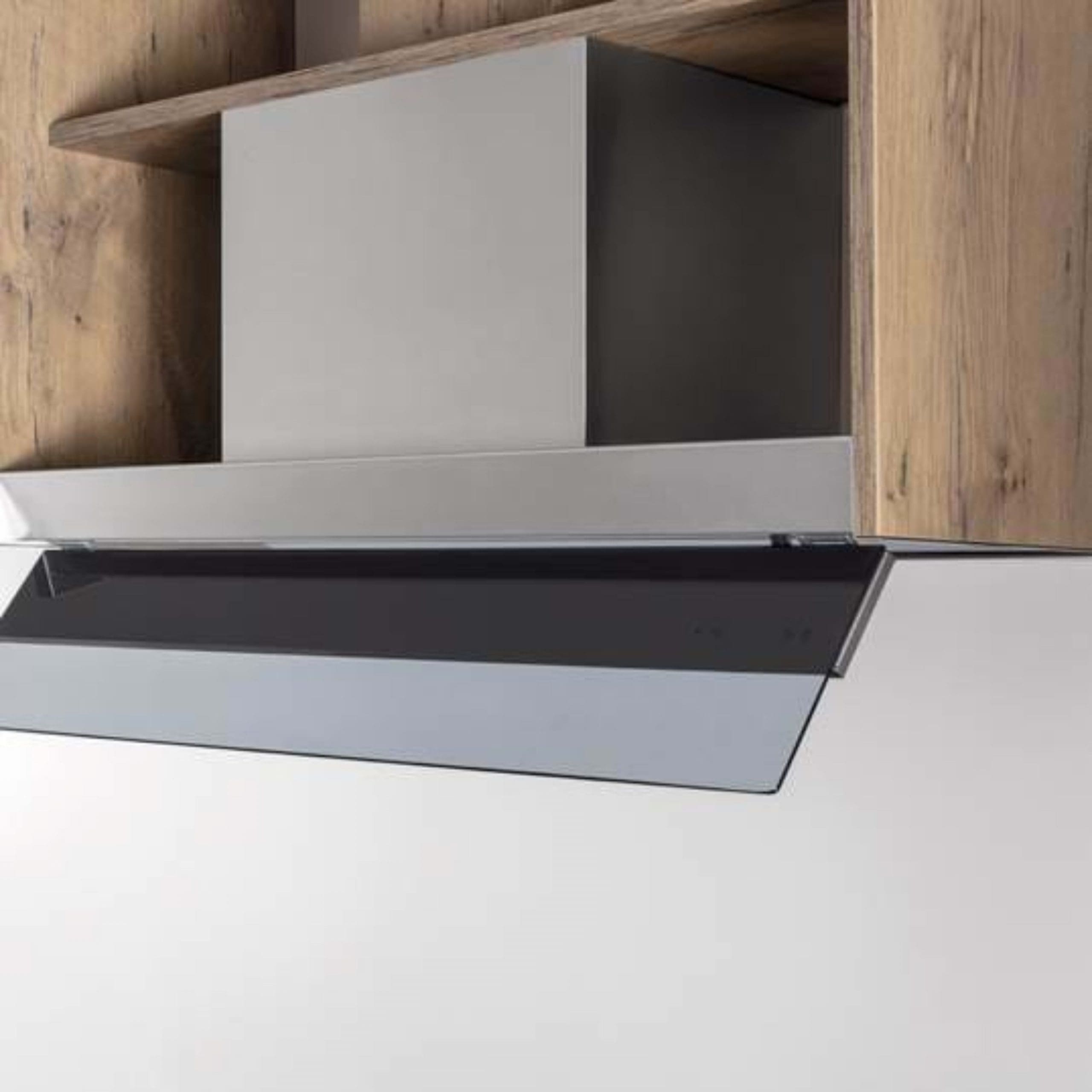 Fusion Advanced 60 cm Acero inoxidable – vidrio. Adecuado para unidades de pared con una profundidad entre 310 y 315 mm. Blindaje ajustable en vidrio transparente para una captura óptima de los vapores de cocción.