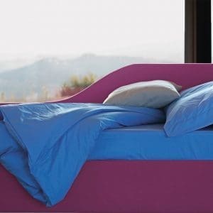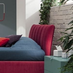 Meeting es una cama doble tapizada con un diseño original y dinámico. El cabecero es la peculiaridad de esta cama, construida en dos formas trapezoidales disponibles en monocromo y bicolor. Tanto el cabecero como el marco de la cama se caracterizan por una combinación de dos revestimientos que pueden pertenecer a categorías