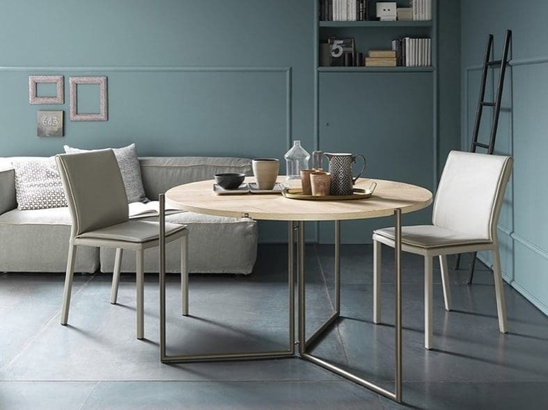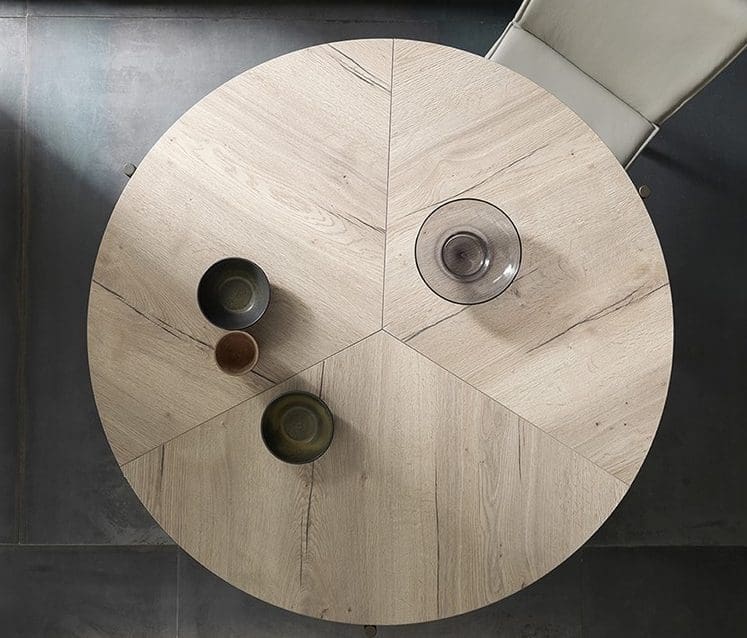La mesa tiene una abertura de compás, con base metálica y tapa de melamina. Ícaro tiene una profundidad mínima de 8 cm cuando está cerrado y alcanza un diámetro de 120 cm cuando la parte superior está abierta. Ideal para guardar cerrado en un espacio reducido. La oferta está destinada a la encimera de melamina con base pintada. Otros acabados están disponibles bajo pedido con un cargo adicional.