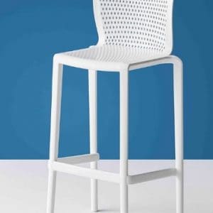 Compuesto por respaldo y asiento perforados, ideal para uso en exteriores debido a su resistencia al desgaste y a los agentes externos. Seis asientos ligeros y apilables disponibles en los siguientes colores: Lino, Gris Tórtola, Verde Oliva, Azul Claro, Terracota, Antracita, Gris Claro.