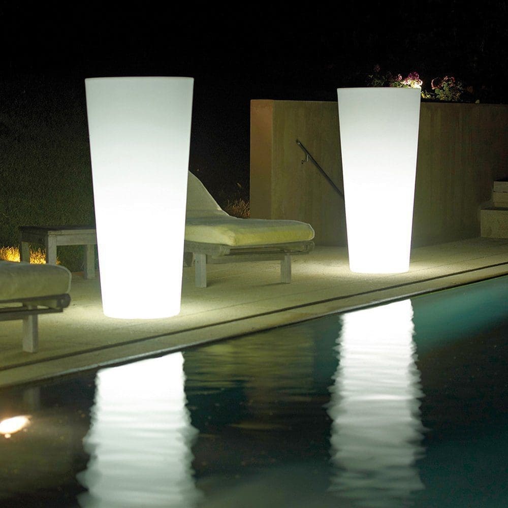 La serie Lighting incluye: jarrón cónico redondo luminoso, jarrón cónico cuadrado luminoso, cubos luminosos y jarrones luminosos (ver foto).