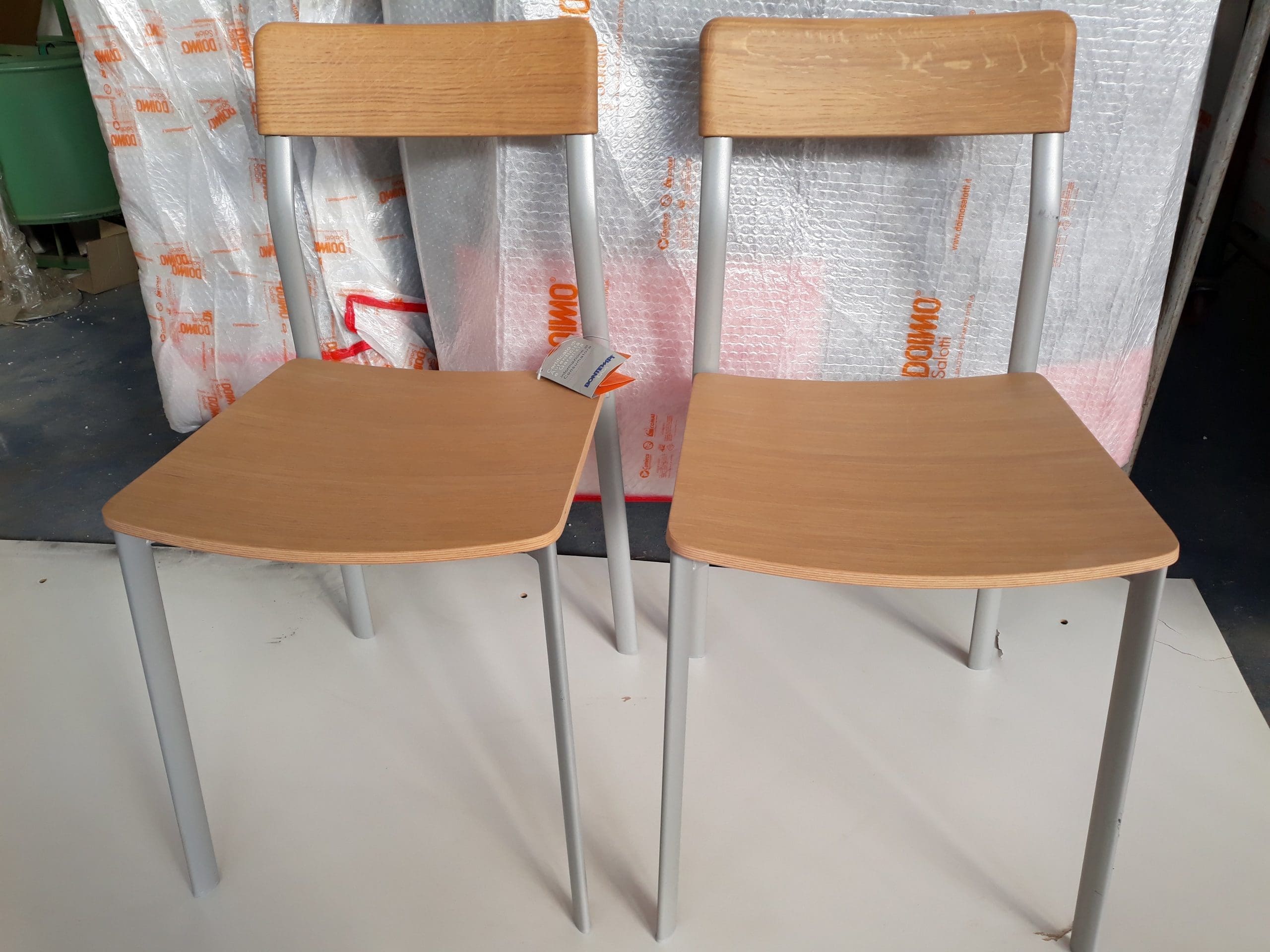 Deimos es una silla de líneas sencillas, que se adapta a cualquier ambiente. Deimos es apilable y sin reposabrazos. La estructura es de metal combinado con madera de roble para el asiento y el respaldo.