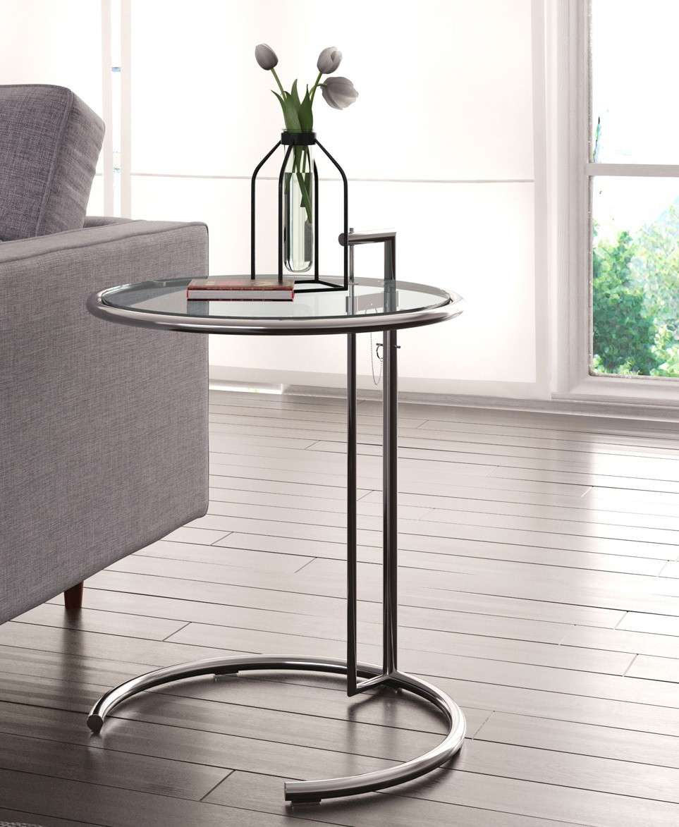 Mesa de centro con estructura de tubo de acero cromado, tapa de cristal.
