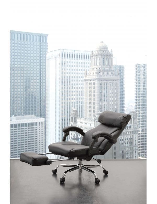 El sillón modelo Galaxy de La Seggiola es la silla de oficina que te sorprenderá gracias a la comodidad y profesionalidad que la distinguen. El sillón Galaxy tiene un diseño que permite una rotación de 360 grados, para facilitar el movimiento durante el trabajo, además el respaldo en ecopiel negra tiene un mecanismo de reclinación no fijo para adaptarse mejor a tu cuerpo. El modelo Galaxy también cuenta con un reposapiernas oculto para utilizar cuando sea necesario, que permite tumbarse con total comodidad. Es posible solicitar el juego de ruedas para parquet, adecuadas para preservar la integridad de su suelo.