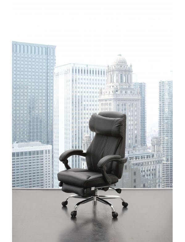 El respaldo estriado y el asiento acolchado garantizan el máximo confort durante largas sesiones de trabajo. Este modelo de sillón es giratorio, útil para desplazarse por la oficina y regulable en altura, gracias al pistón de gas.