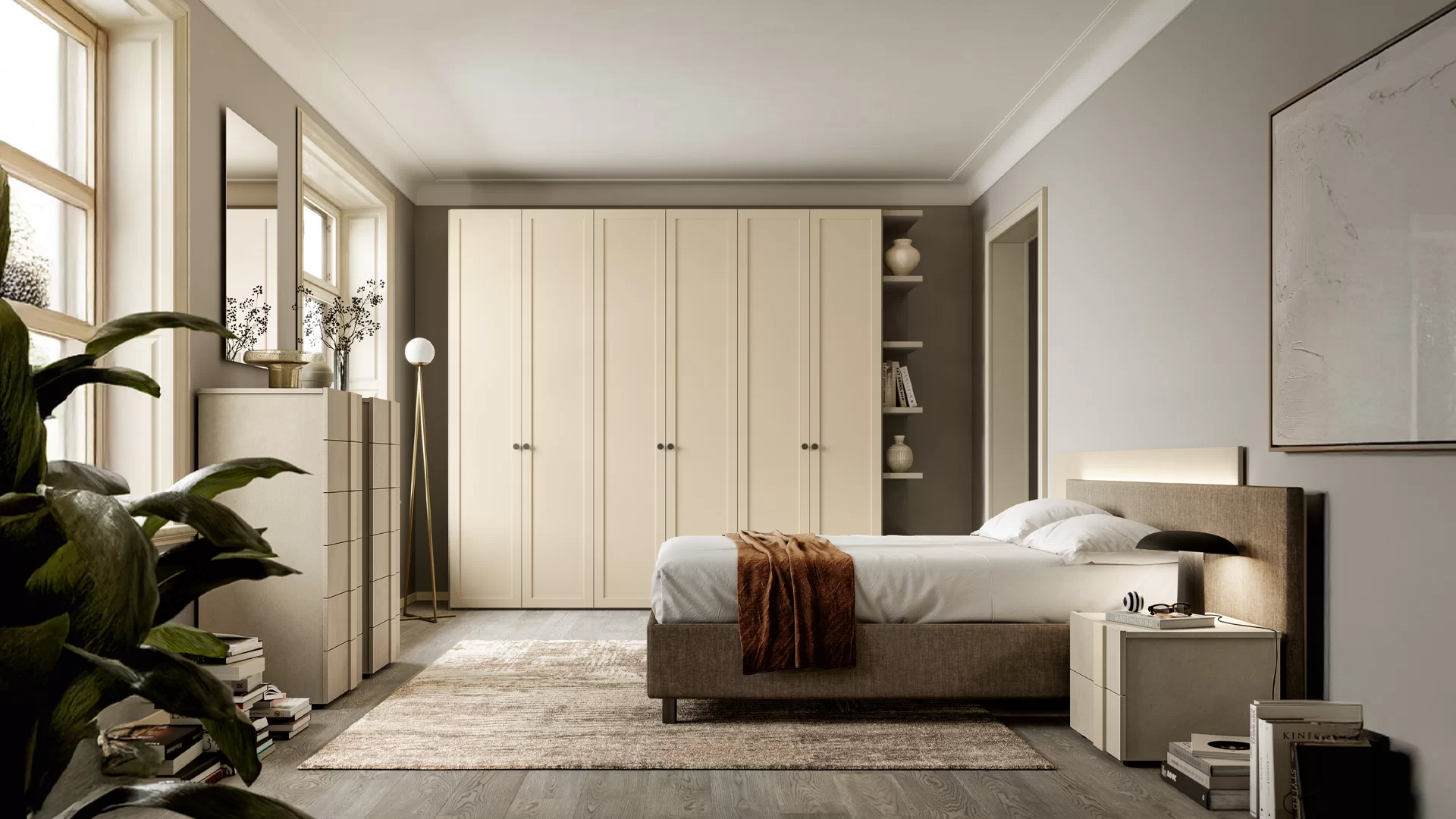 Per un ambiente dal design contemporaneo la linea Homy di Santa Lucia è l'ideale per arredare le diverse zone della propria casa. Integra Giorno è una delle possibilità presenti in catalogo e comprende un programma di soluzioni per mobili TV, pareti attrezzate e librerie. L'area living diviene protagonista di geometrie simmetriche, declinate da attente scelte materiche con la linea Obi, mentre per quanto riguarda il relax e il riposo, Projecta Notte propone diverse soluzioni per la camera da letto. Ad esempio, il modello Parentesi che si caratterizza per la testiera dotata di pannello rivestito, impreziosito ulteriormente da un sistema di illuminazione sottostante. Inoltre, sono disponibili i gruppi di mobili da abbinare, come i comodini e le cassettiere. Santa Lucia dedica ampio spazio alla produzione di armadiature definite da un design pulito coniugato all'aspetto funzionale. Projecta Armadi offre oltre venti tipologie tra cui scegliere i moduli frontali e angolari, dotati di ante battenti o scorrevoli. Ideata per integrarsi nelle strutture murarie è Quadra di Santa Lucia, che si contraddistingue per i versatili sistemi scorrevoli. Infine, K_obi è la soluzione per coloro che desiderano il massimo da una cabina armadio, scegliendo tra mensole, contenitori e portabiti.