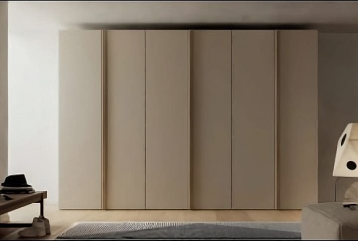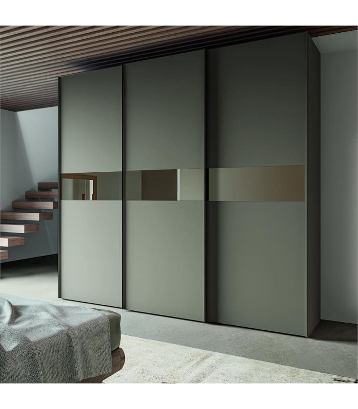 Armadio minimale ad ante scorrevoli con fascie centrali a specchio che caratterizzano il suo design molto particolare che spezza