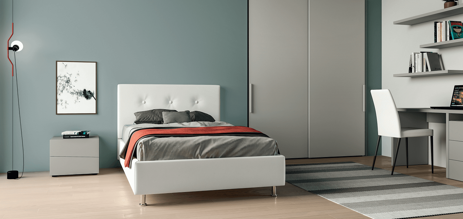 Per un ambiente dal design contemporaneo la linea Homy di Santa Lucia è l'ideale per arredare le diverse zone della propria casa. Integra Giorno è una delle possibilità presenti in catalogo e comprende un programma di soluzioni per mobili TV, pareti attrezzate e librerie. L'area living diviene protagonista di geometrie simmetriche, declinate da attente scelte materiche con la linea Obi, mentre per quanto riguarda il relax e il riposo, Projecta Notte propone diverse soluzioni per la camera da letto. Ad esempio, il modello Parentesi che si caratterizza per la testiera dotata di pannello rivestito, impreziosito ulteriormente da un sistema di illuminazione sottostante. Inoltre, sono disponibili i gruppi di mobili da abbinare, come i comodini e le cassettiere. Santa Lucia dedica ampio spazio alla produzione di armadiature definite da un design pulito coniugato all'aspetto funzionale. Projecta Armadi offre oltre venti tipologie tra cui scegliere i moduli frontali e angolari, dotati di ante battenti o scorrevoli. Ideata per integrarsi nelle strutture murarie è Quadra di Santa Lucia, che si contraddistingue per i versatili sistemi scorrevoli. Infine, K_obi è la soluzione per coloro che desiderano il massimo da una cabina armadio, scegliendo tra mensole, contenitori e portabiti.