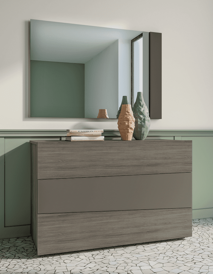 Come da foto, le finiture disponibili sono in Essenza Matwood Grey/ Eco Pepe. Tonalità calde per un design moderno e raffinato.