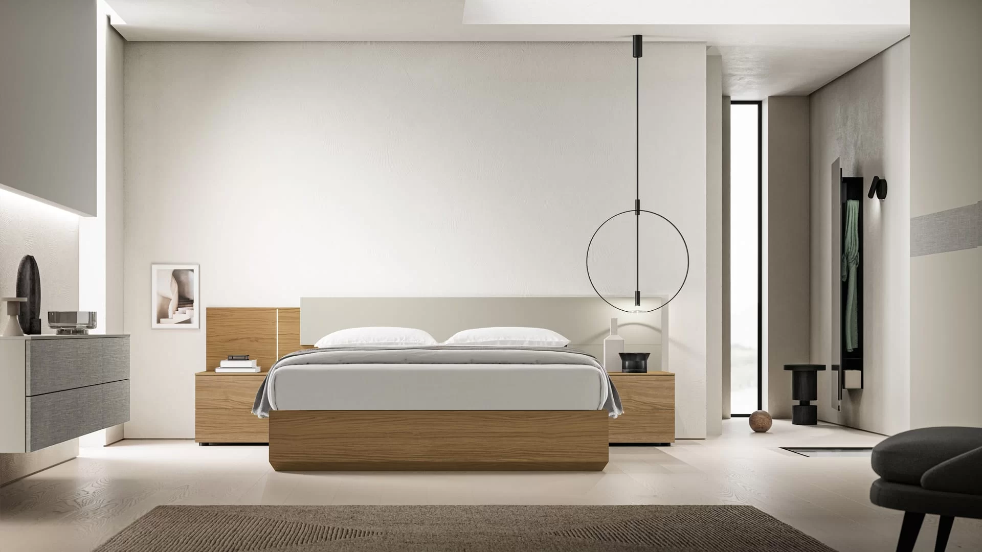 Per un ambiente dal design contemporaneo la linea Homy di Santa Lucia è l'ideale per arredare le diverse zone della propria casa. Integra Giorno è una delle possibilità presenti in catalogo e comprende un programma di soluzioni per mobili TV, pareti attrezzate e librerie. L'area living diviene protagonista di geometrie simmetriche, declinate da attente scelte materiche con la linea Obi, mentre per quanto riguarda il relax e il riposo, Projecta Notte propone diverse soluzioni per la camera da letto. Ad esempio, il modello Parentesi che si caratterizza per la testiera dotata di pannello rivestito, impreziosito ulteriormente da un sistema di illuminazione sottostante. Inoltre, sono disponibili i gruppi di mobili da abbinare, come i comodini e le cassettiere. Santa Lucia dedica ampio spazio alla produzione di armadiature definite da un design pulito coniugato all'aspetto funzionale. Projecta Armadi offre oltre venti tipologie tra cui scegliere i moduli frontali e angolari, dotati di ante battenti o scorrevoli. Ideata per integrarsi nelle strutture murarie è Quadra di Santa Lucia, che si contraddistingue per i versatili sistemi scorrevoli. Infine, K_obi è la soluzione per coloro che desiderano il massimo da una cabina armadio, scegliendo tra mensole, contenitori e portabiti.