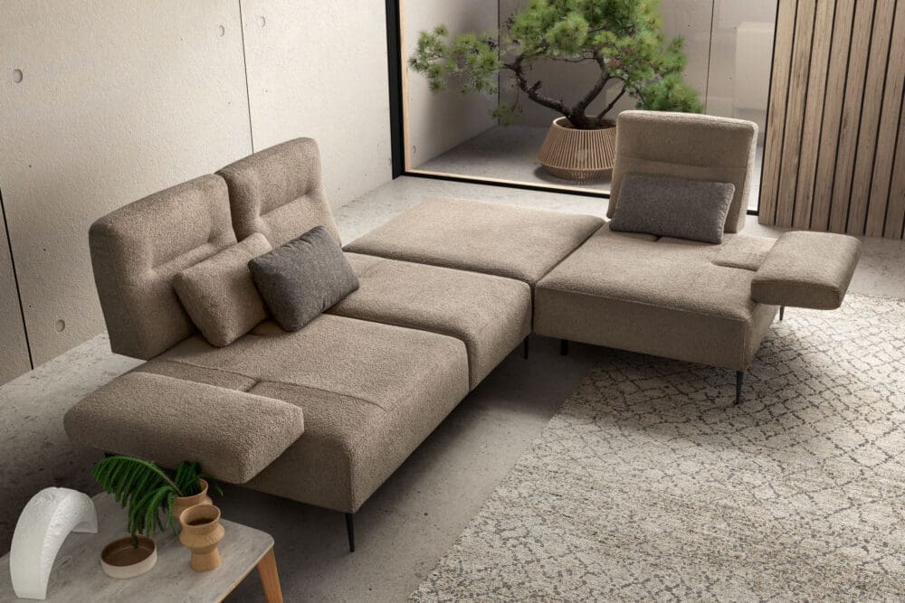 Pensato per esprimere l’attuale necessità di adattare ogni singolo elemento alle proprie esigenze senza trascurare comodità e ricerca estetica, il divano Dalton ha un design contemporaneo, facilmente abbinabile con vari stili d’arredo, ed è caratterizzato dal sistema traslante degli schienali, che permette di ampliare notevolmente la profondità della seduta, e dai braccioli a cuscino con doppio movimento traslante e reclinabile in più posizioni: un connubio di moderna funzionalità e assoluto relax.