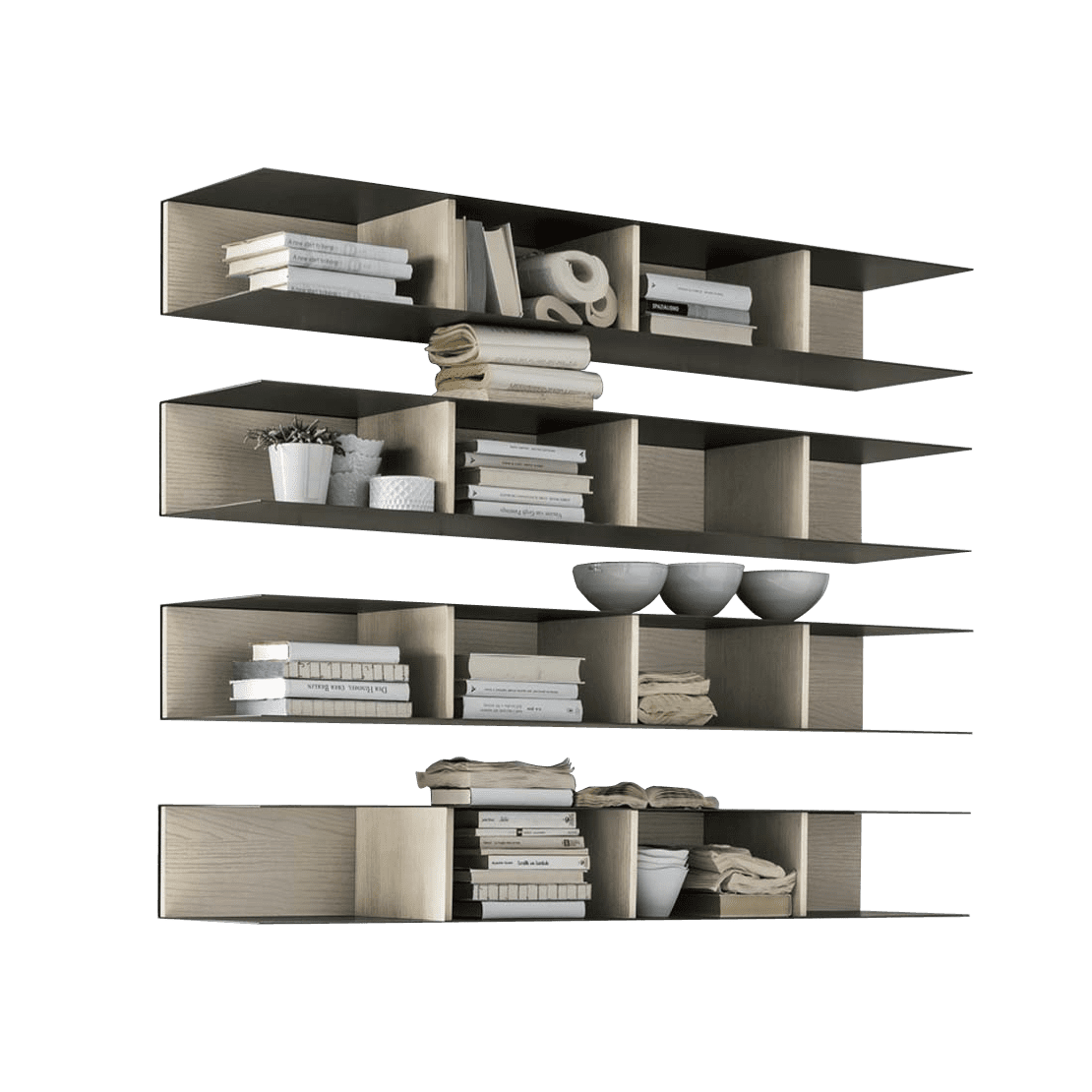 I Pensili Raster non solo offrono una capacità di stoccaggio ottimale, ma rappresentano anche un elemento decorativo che arricchisce la tua casa. Grazie al loro design studiato, puoi esporre libri, oggetti d'arte o fotografie, creando una personalizzazione unica.