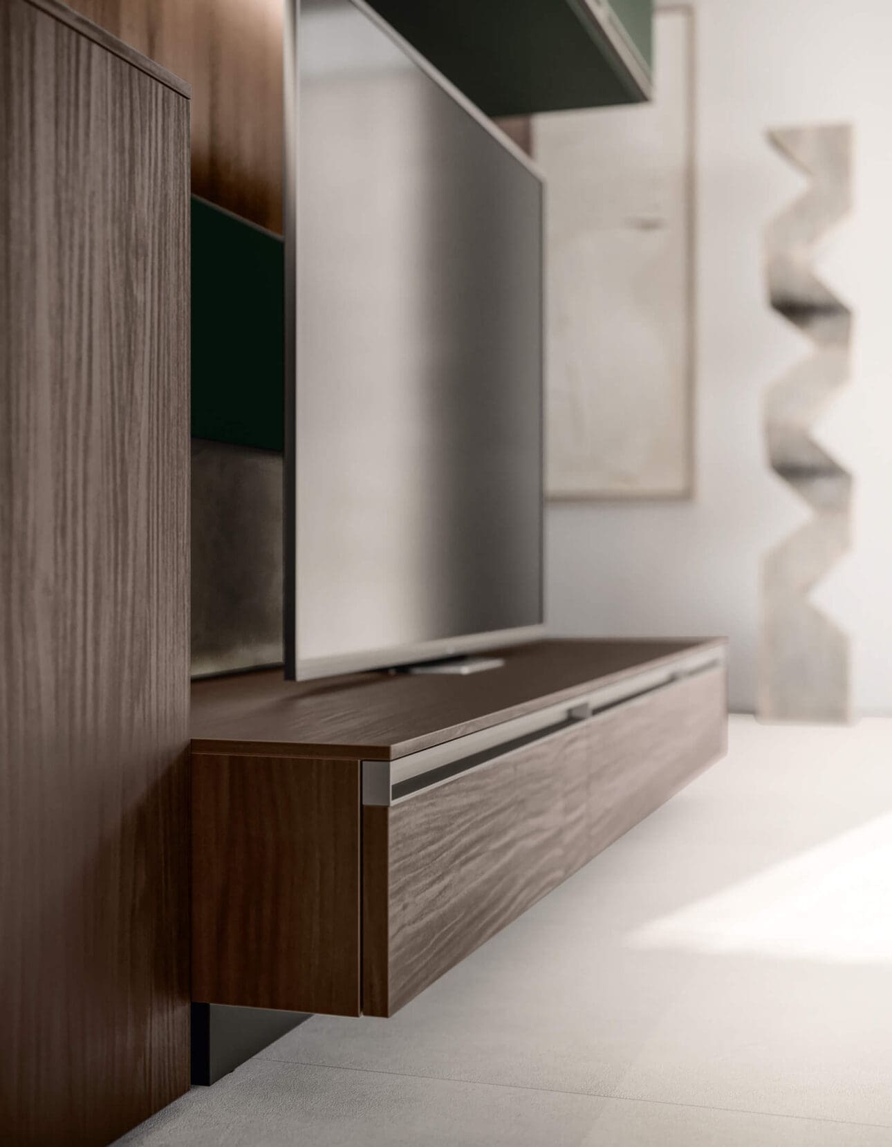 Il design moderno e attuale viene declinato attraverso le serie di Santa Lucia incluse nella linea Ikona. Soluzioni modulari e componibili a seconda delle differenti necessità, da personalizzare in base alle molteplici finiture materiche e cromatiche previste all'interno del catalogo prodotti. Innova Giorno è un progetto d'arredo ideato per la zona living, dove le geometrie sono ben delineate e gli elementi sospesi da terra lasciano ariosità alla parete multiuso. Sono presenti moduli a giorno e vani contenitori dotati di pratica apertura a gola. Elementi che possono essere caratterizzati da colori e materiali differenti, esaltando l'arredo attraverso le tonalità disponibili oppure preferendo la semplice eleganza del legno naturale. Ikona di Santa Lucia include anche Dandy Giorno, che si contraddistingue per l'attenzione ai dettagli e ai particolari dell'intera composizione. Si sviluppa in verticale e si tratta di una soluzione concepita per ottimizzare lo spazio circostante in modo sempre organizzato e funzionale. Complementi firmati Santa Lucia disponibili in tinta unita o con inserti arricchiti dalle pregiate venature del legno. I piani d'appoggio sono diversi, comprendono scaffalature a giorno o fornite di anta telaio, possono essere di varie dimensioni e misure.