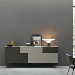 La madia con basamento Tracks ha un design elegante che conquista lo sguardo e lo spazio. Lo schienale rialzato crea una nicchia luminosa che, oltre a dare profondità all’arredo, aggiunge valore ad un contesto moderno e di tendenza.